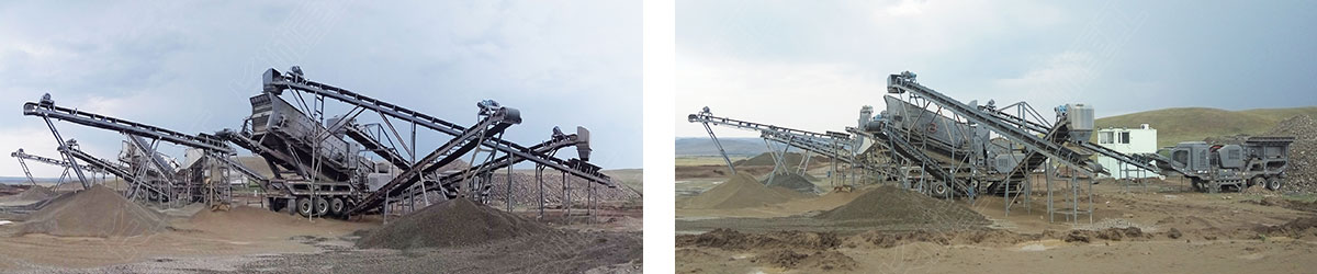 移動(dòng)破碎站工作過程中,通常以外接電力電源為動(dòng)力來(lái)源,原料由振動(dòng)給料機(jī)均勻地送到顎式破碎機(jī)或者反擊式破碎機(jī)進(jìn)行粗碎作業(yè),粗碎后的物料由皮帶輸送機(jī)送入到圓錐破碎機(jī)或者反擊式破碎機(jī)進(jìn)行進(jìn)一步破碎,細(xì)碎后的物料被輸送到振動(dòng)篩進(jìn)行篩分,達(dá)到成品粒度要求的物料被由成品輸送帶輸出即為成品;未達(dá)到成品粒度要求的物料從振動(dòng)篩返回制砂機(jī)或者圓錐破碎機(jī)重新加工,形成閉路多次循環(huán)??筛鶕?jù)客戶對(duì)石料粒度、產(chǎn)量的要求,進(jìn)行組合和分級(jí)。